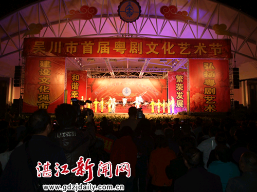 Cantonese Opera, originating in Guangdong province, is one of the major styles of Chinese opera. Wuchuan itself is the hometown of the Southern School, which is unique for its exaggerated expressions, highly difficult stunts and a rough style.