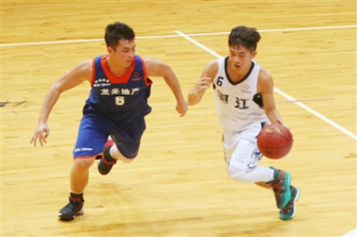 | A Zhanjiang basketball player dribbles past his opponent in a game of the Beibu Gulf Sports Meet. [Photo/Zhanjiang Evening News] |