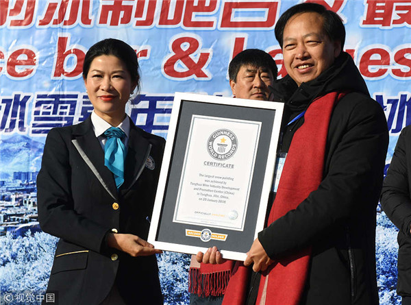 The snow painting gets a certificate from the Guinness World Records. [Photo/VCG]