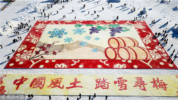 The largest snow painting is seen in Tonghua city, Northeast China's Jilin province, Jan 20, 2018. [Photo/VCG]