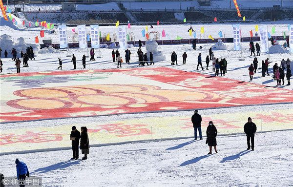 The largest snow painting is seen in Tonghua city, Northeast China's Jilin province, Jan 20, 2018. [Photo/VCG]