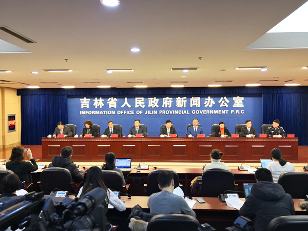 | The Information Office of Jilin Provincial Government holds a news conference on Jan 27. The Jilin government and the CPPCC Jilin committee announced that eight departments will cooperate in supporting financial risk control in the province. [Photo provided to ejilin.gov.cn] |