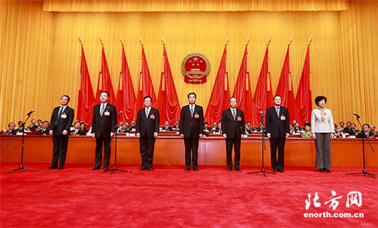 | The leaders of the 17th Tianjin People's Congress Standing Committee have been elected.[Photo/enorth.com.cn] |