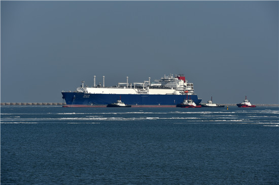 | The LNG boat "CESI BEIHAI" arrives in Tianjin port. [Photo/Xinhua] |