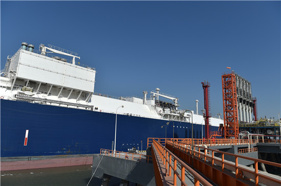 | The LNG boat at a liquefied natural gas acceptance station [Photo/Xinhua] |
