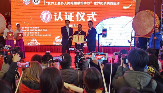 On Thursday, Little New Year (Xiaonian in Chinese), a record was made, as the most people in the world to eat pickled stuffed cabbage dumplings together was certified by the World Record Association. [Photo by Xixingyushe / for chinadaily.com.cn]