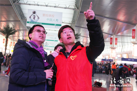 Wang Jingwen, a third year student from Tianjin Railway Technical and Vocational College, said that "It is my third time to be a volunteer for the travel rush. Although it's a little bit tiring, I still feel satisfied helping passengers."