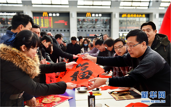 Feb 8 is Little New Year, or "Dec 23rd", in the Chinese lunar calendar. Staff members in Tianjin West Station prepared an event to mark the day by sending "Fu" and couplets to passengers.