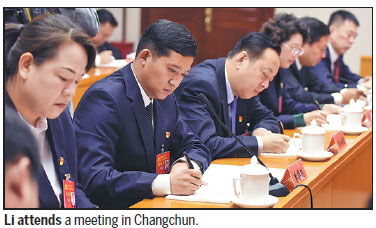 | Li Hualiang talks with his colleagues at Machang village in Changchun, Jilin province. [Photos By Wang Lina / For China Daily] |