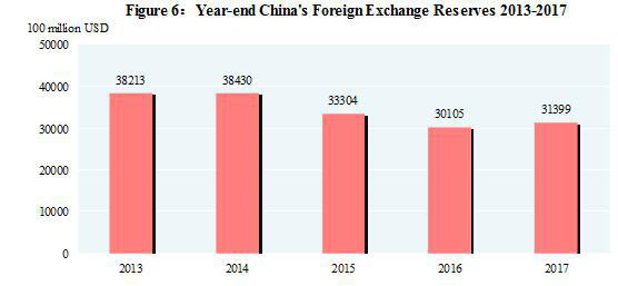 At the end of 2017, China’s foreign exchange reserves reached $3,139.9 billion, an increase of $129.4 billion compared with the end of 2016. The average exchange rate of the year was 6.7518 RMB to 1 USD dollar, a depreciation of 1.6 percent from 2016.