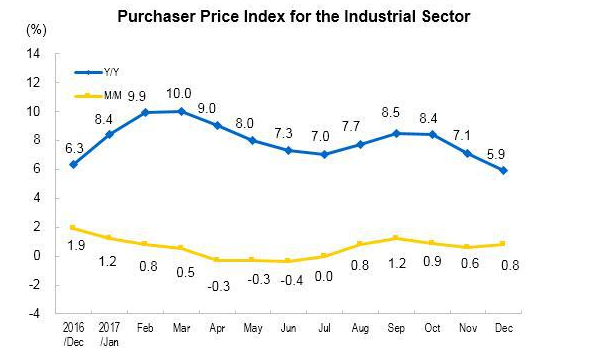 In December alone, the purchaser price index for manufactured goods increased 5.9 percent year-on-year, an increase of 0.8 percent month-on-month.