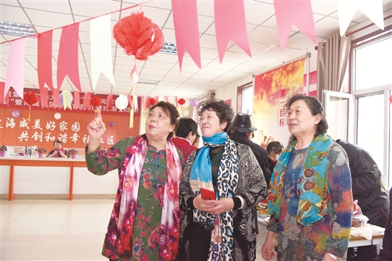 Senior residents of Chaoyang Community try sweet dumplings while celebrating Lantern Festival, Feb 27. [Photo/Baotou Daily]