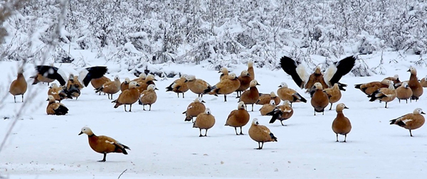 A view of wild ducks on the Changbai Island in Jilin city, Jilin province. [Photo provided to chinadaily.com.cn]