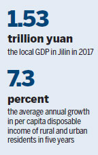 When delivering his government work report during the first session of the 13th People's Congress of Jilin at the end of January, Governor Jing Junhai said the province's GDP increased from 1.19 trillion yuan ($187 billion) in 2012 to 1.53 trillion yuan last year.