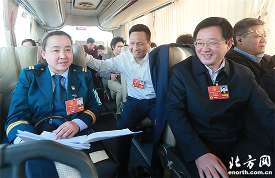 | The Tianjin delegation to the National People's Congress arrives in Beijing on March 2. [Photo/enorth.com.cn] |