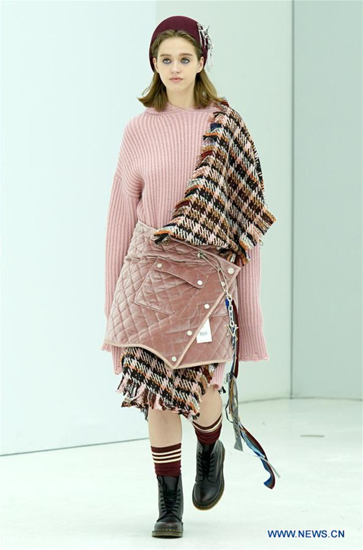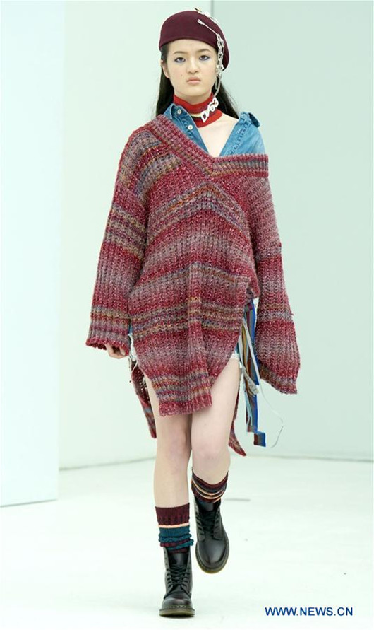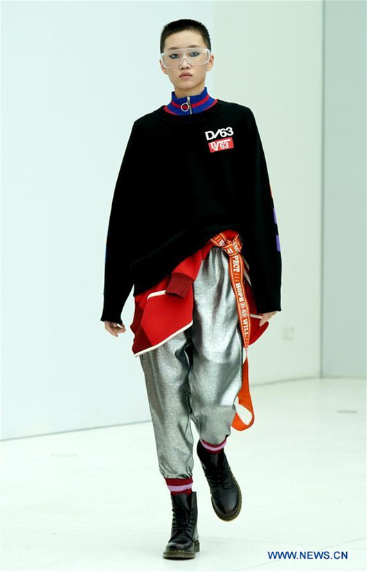 A model presents a creation of the D-63 collection at Shenzhen Fashion Week A/W 2018 in Shenzhen, south China's Guangdong Province, March 14, 2018. (Xinhua/Chen Jianli)