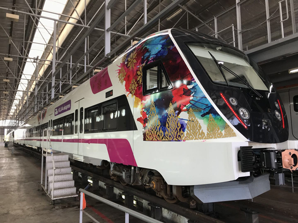 The appearance of the train absorbed the cloth dyeing patterns in Malaysia and reflects both local culture and the harmony of nature and technology.