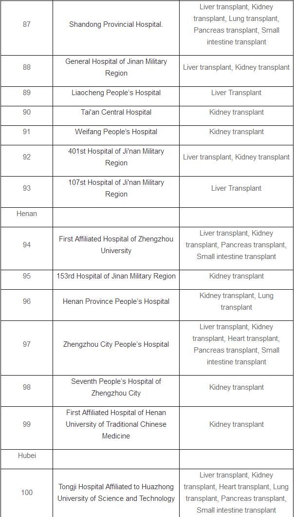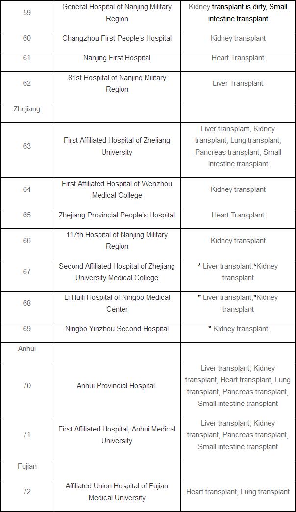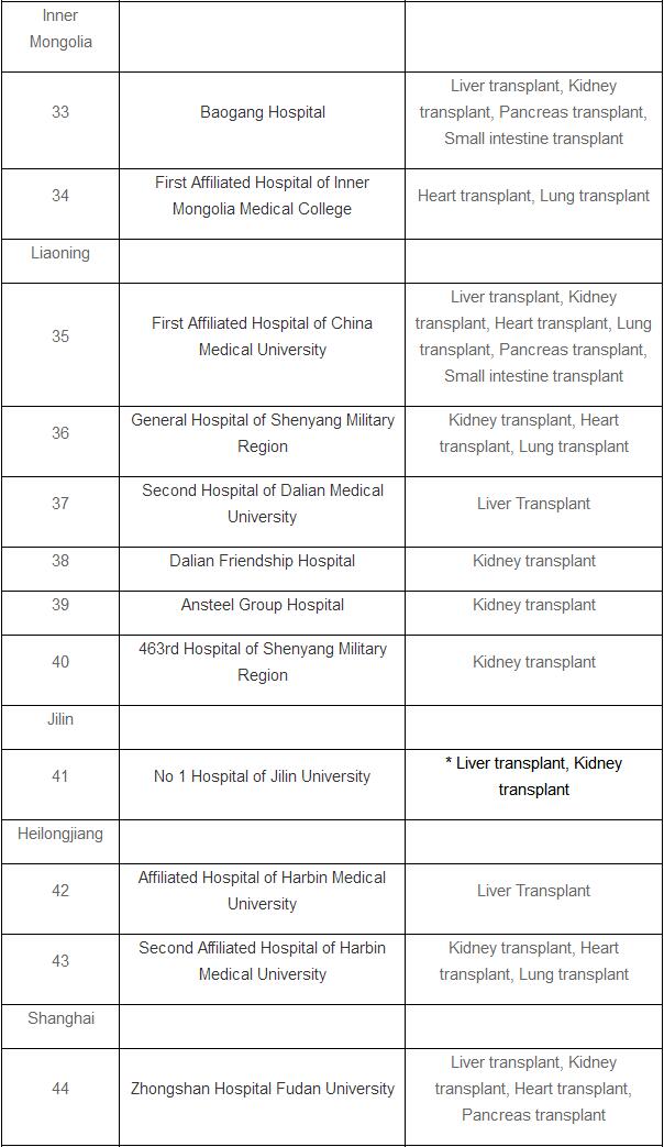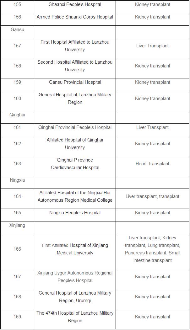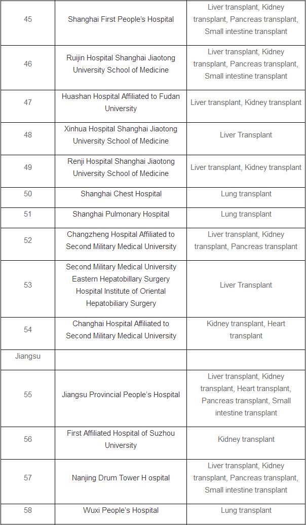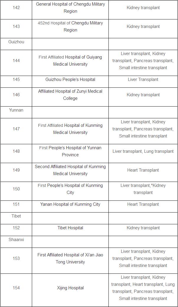 The list doesn’t include pilot hospitals that are allowed to perform organ transplants after cardiac death.