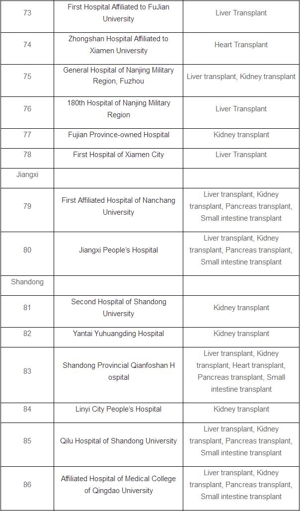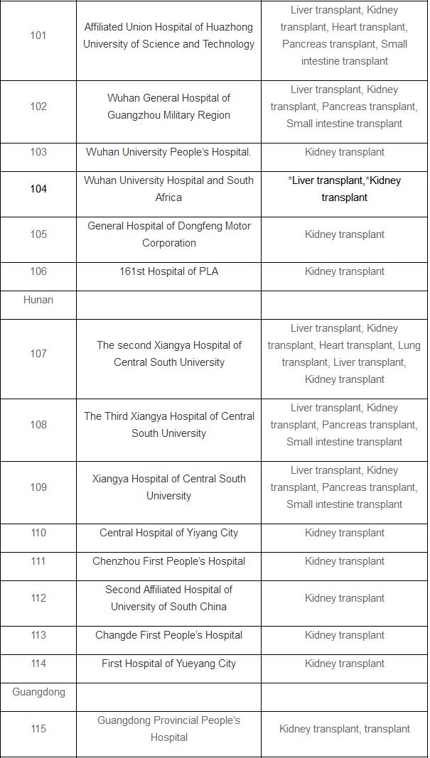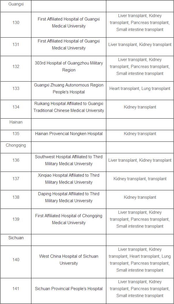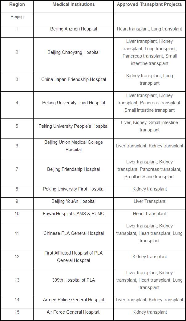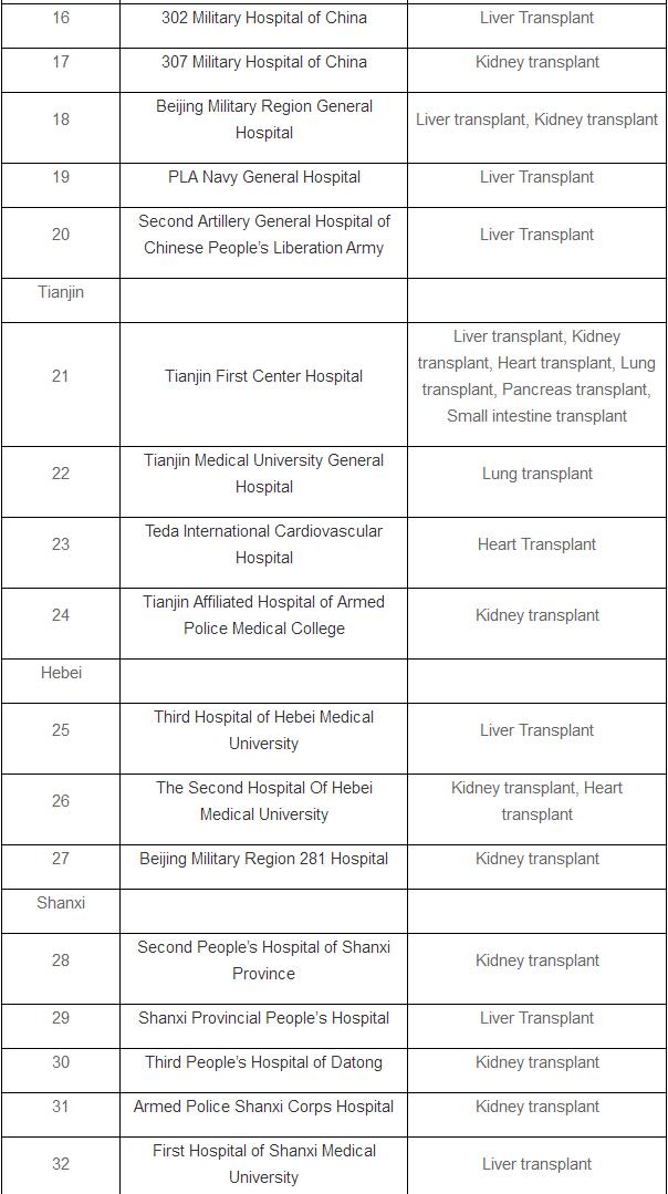 The list doesn’t include pilot hospitals that are allowed to perform organ transplants after cardiac death.