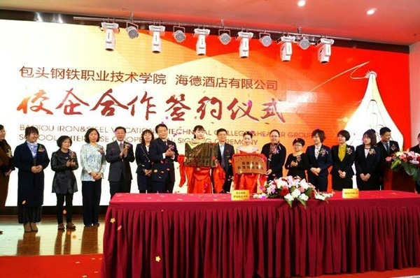 The college is to cooperate with Baotou Header Hotel on a nutrition and detection project. Students who choose the major can find employment at the hotel following graduation. [Photo/Baotou Daily]