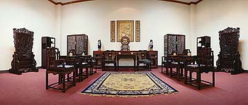 Most of the red sandalwood works displayed here are elaborately carved imitations of originals in the Palace Museum. There is also Ming and Qing Dynasty furniture, Buddhist artworks, and carvings shaped like old Beijing courtyards. The museum's interior design is modeled on the Palace Museum.