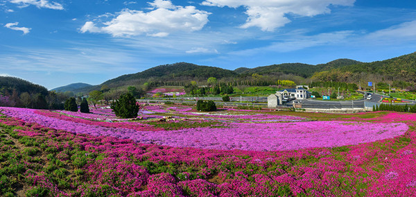 Visitors enjoy strolling through a field of 600,000 shibazakula (moss phlox) at the Bangchui Island Hotel in Dalian, Northeast China's Liaoning province. As a state guest house, the hotel has hosted more than 100 party and state leaders as well as foreign heads of state and government. [Photo provided to chinadaily.com.cn]