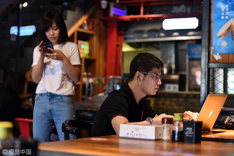 Wang Yang and Zhou Na work as a team in Taiyuan, capital of North China's Shanxi province. [Photo/VCG]