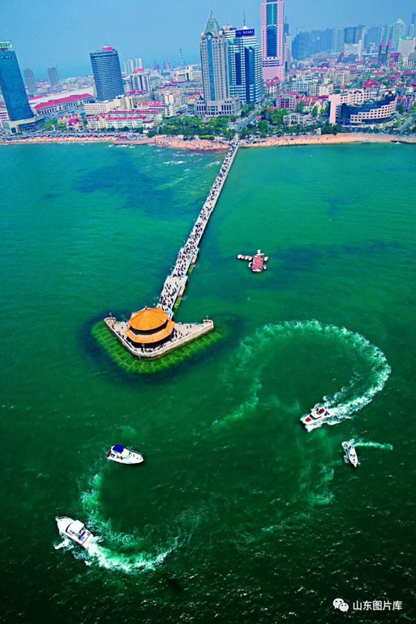 First built in 1892, Zhanqiao Pier is a major and well-known landmark of Qingdao. The crescent pier stretches out to the sea at Qingdao Bay. [Photo/WeChat account: sd_photo]