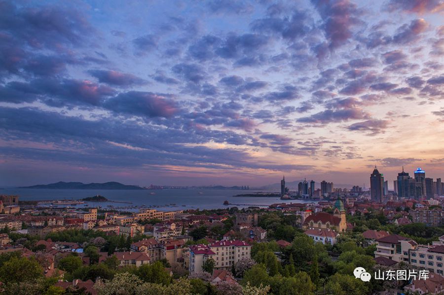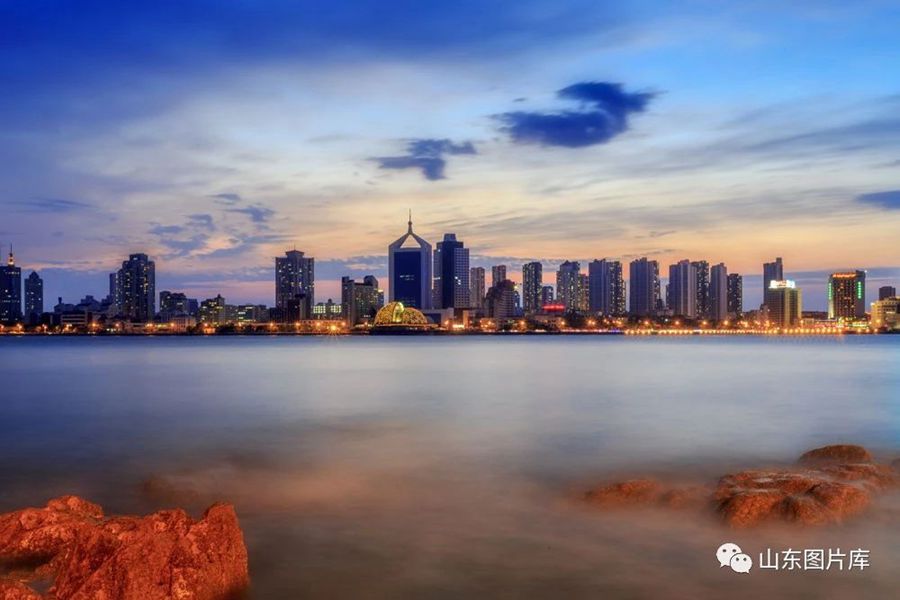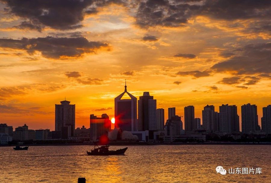 Qingdao at sunset is hazy but charming. A ray of setting sun and a streak of twilight welcome the quiet night. [Photo/WeChat account: sd_photo]