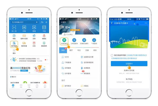 Step 2: Follow the prompts and apply for a Taihu electronic traffic card (Chinese: Tai Hu dian zi jiao tong ka). Upon identity verification, a virtual account will be opened and a QR payment code will become available. [Photo/WeChat account: wuxifabu2013]