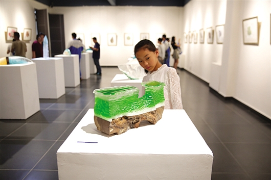 A young visitor views an installation at the art museum, June 1. [Photo/Baotou Evening News]