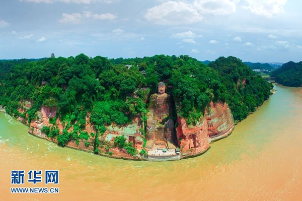 The Leshan Giant Buddha is located at the confluence of the Dadu, Qingyi and Minjiang rivers in Sichuan province. [Photo/Xinhua]