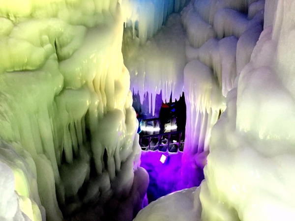 Translucent ice forms a natural archway leading into the depths.