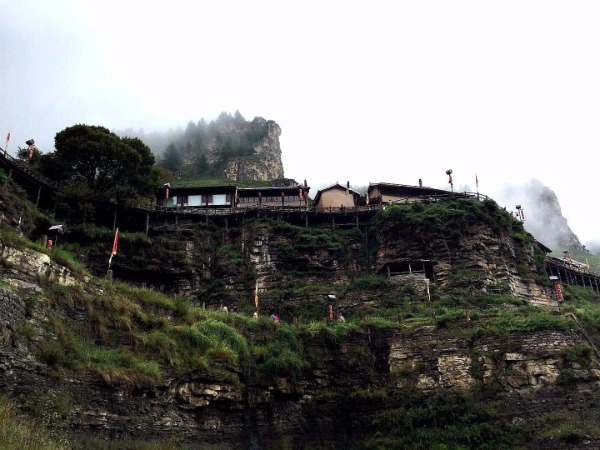 The mountain also hosts the cliff-side village of Wanghuagou. Stone-and-wood houses are connected to one another as log platforms serve as sidewalks high above the ground.