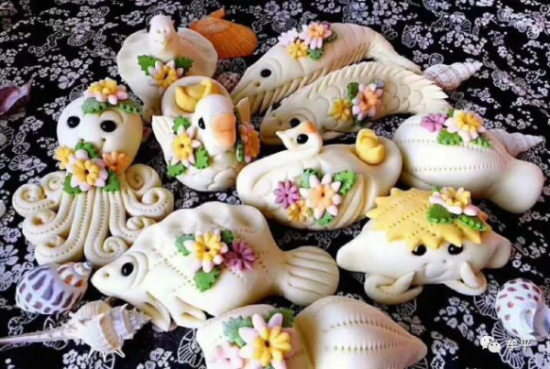 By various processes such as kneading, shaping, carving, steaming and coloring, skilled cooks made bobo into various shapes of different animals and figures with various images like pomegranates, lotuses, dragons, phoenixes and tigers. So they are both edible and ornamental.