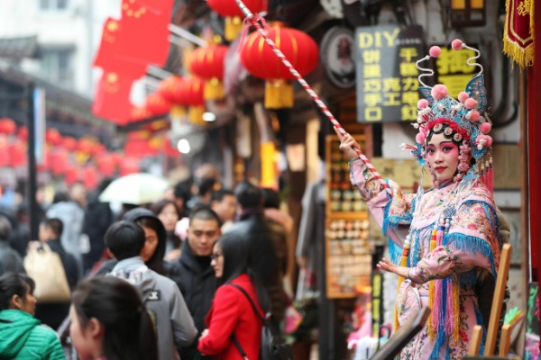 The lively Ciqikou, an ancient river town in Chongqing is brimming with crowds prior to Spring Festival this year.[Photo provided to China Daily]