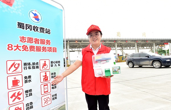 A volunteer service activity is organized to provide services for people such as offering free water, wheelchairs and commonly used medicines. [Photo/VCG]