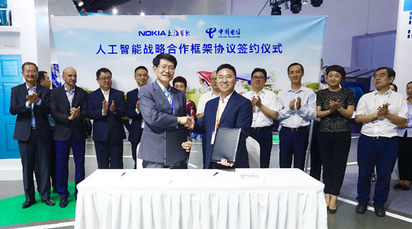 China Telecom and Shanghai Nokia Bell signed an AI Strategic Cooperation Framework Agreement at the PT Expo China18 on Sept 26.