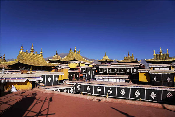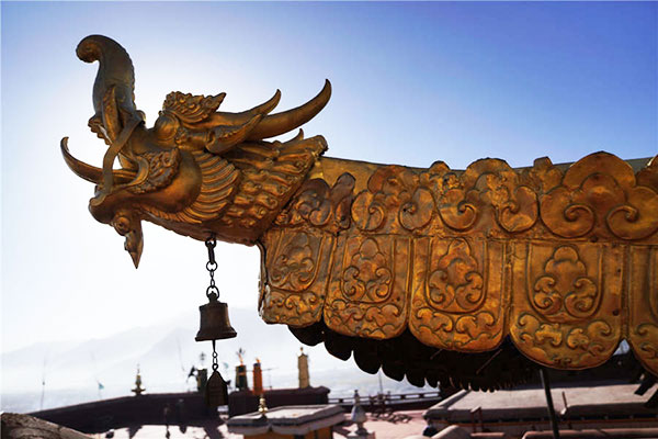 The Tibetan Buddhism heritage site Potala Palace is known for its shining gold-plated roof, which has just undergone major repair and polishing in Lhasa, capital of Southwest China's Tibet autonomous region. [Photo/Xinhua]