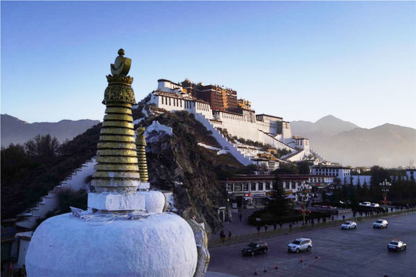 The Tibetan Buddhism heritage site Potala Palace is known for its shining gold-plated roof, which has just undergone major repair and polishing in Lhasa, capital of Southwest China's Tibet autonomous region. [Photo/Xinhua]