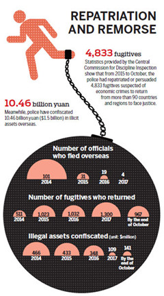 Thanks to the new law, which took effect on Oct 26, Chinese officials for the first time have the right to request assistance from foreign counterparts in seizing, freezing, confiscating and returning illegally obtained assets.