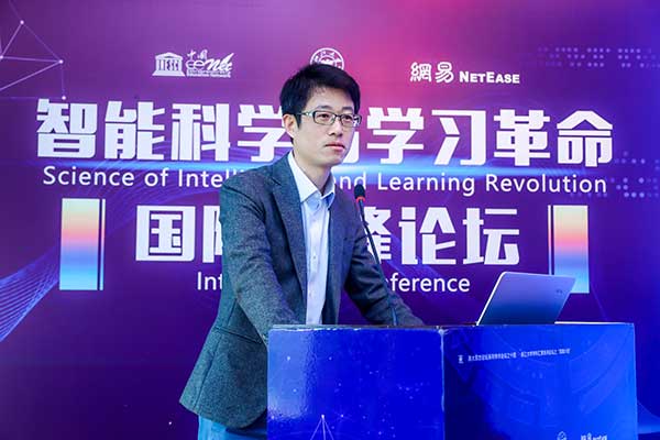 Wang Yuan, vice-president of NetEase, during the Science of Intelligence and Learning Revolution International Summit Conference, held in Hangzhou, Zhejiang capital, on Nov 19 and 20. [Photo provided to China Daily]