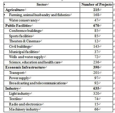 Table 1 Sectoral Distribution of Complete Projects Overseas Completed with the Help of China (by the end of 2009)