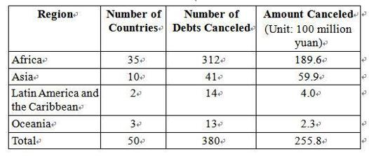Table 2 Statistics on Debts Owed to China That Have Been Canceled by the Chinese Government (by the end of 2009)