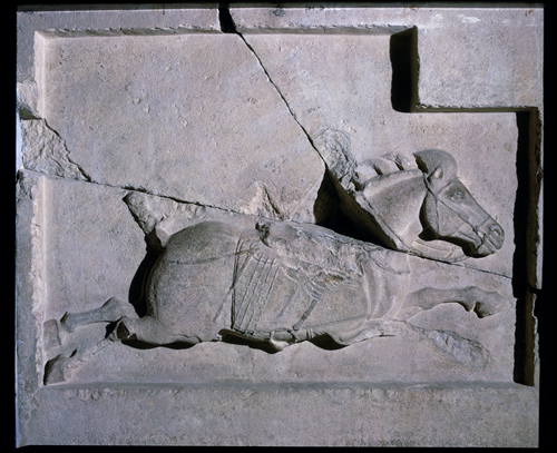 The Hall of Carved Stones is divided into two parts: the stone inscription of the mausoleum and the Buddhist statues. In one of the halls, four stone horse reliefs are hung on a dimly lit wall. They are four of the well-known "Six Steeds of the Zhao Mausoleum "commissioned by the Taizong Emperor (r. 627-649)of Tang for his own tomb - the Zhao Mausoleum. Today, only these four reside in China. The other two reliefs are housed in the Penn Museum in the United States.