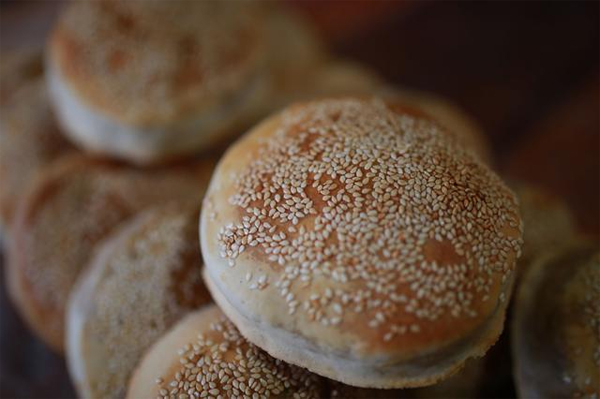 Horseshoe-shaped shaobing is a traditional baked sesame flatbread from Shanghe county of Jinan. Its delicacy, easy storage and portability make it a nice gift when people visit relatives and friends.