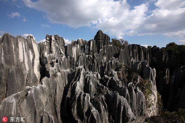 Located in Shilin Yi autonomous county, Kunming, capital of Yunnan province, Stone Forest Scenic Area is famous for its karst landscape, featuring various types of oddly shaped rocks, and a long complex geological history.