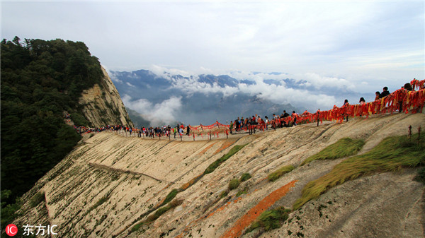 Huashan Mountain, one of the Five Great Mountains in China, is located in Huayin city, Weinan city, Northwest China's Shaanxi province. The site of 210 natural and cultural scenic spots, it is often referred to as the "root of Chinese civilization".