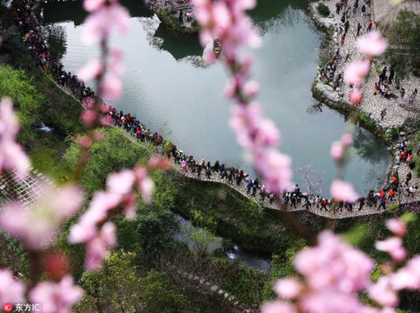Located in the mountainous suburb of Youyang Tujia and Miao autonomous county, Chongqing, Taohuayuan, which means peach flower garden in Chinese, is a national 5A-level scenic area. It is the prototype of the "heaven on earth" mentioned by the great poet Tao Yuanming who lived during the Eastern Jin Dynasty (317-420).