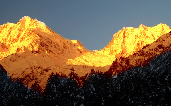 Hailuogou Scenic Area is a tourism scenic spot of the lowest elevation in eastern Asia. It offers visitors easy access to modern marine glaciers and original forests.